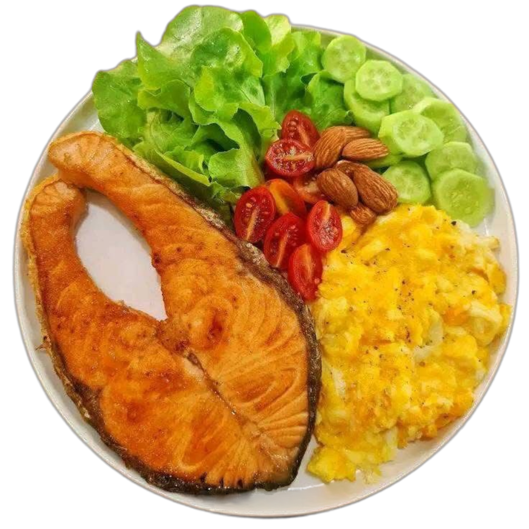 Suculento bife acebolado com arroz branco e salada fresca.